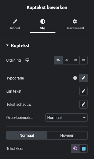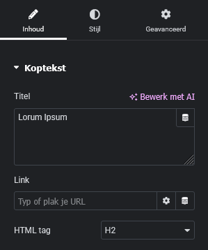 Deze zijn verdeeld over 3 tabs: Inhoud, Stijl en Geavanceerd.